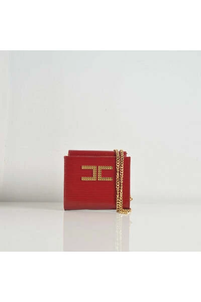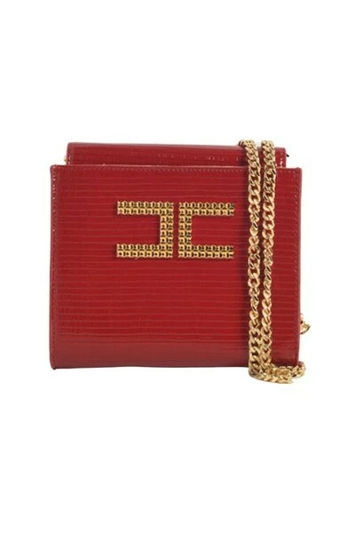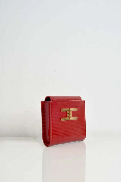 Vierkante koppeling in het lucide hagedis -effect hagedis. Velvet rode kleur. Goudmetalen ketting. Maxi Gold Color Logo. Intern toegepaste pocket. Maatregelen: l 18 x h 17 x p 5 cm.