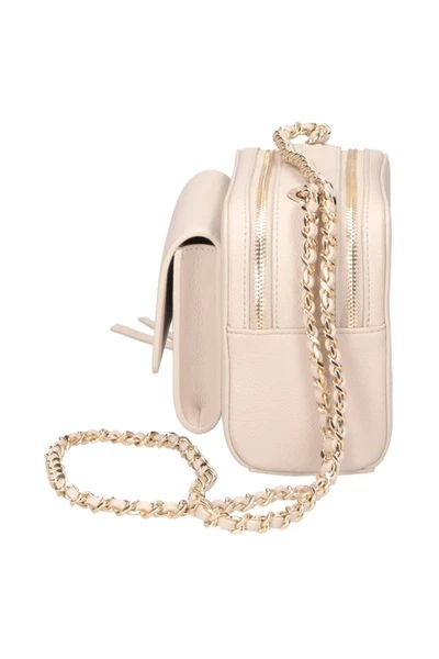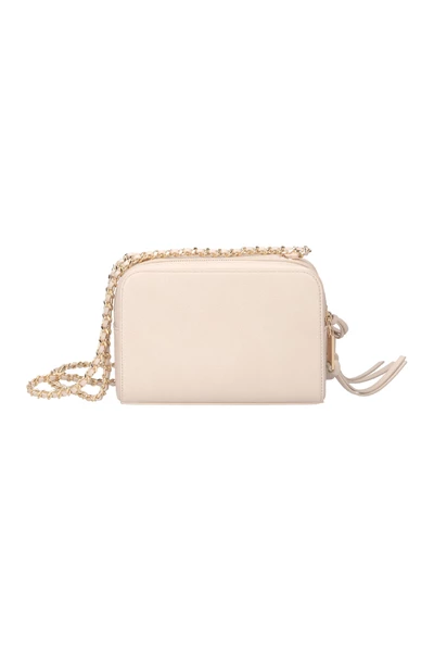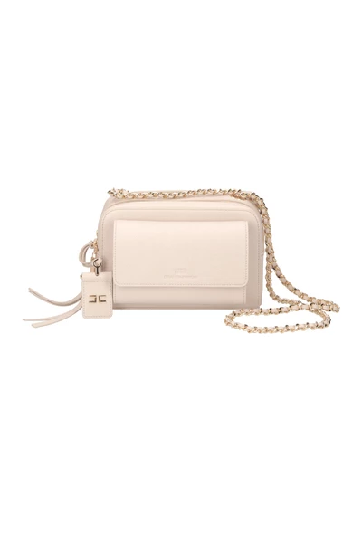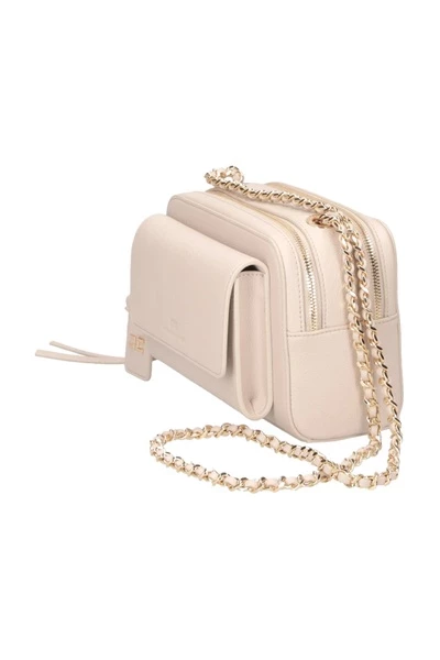 Elisabetta franchi -tassen … vanille schouderriemtas in Bottalata Synthetisch leer met Maxi voorzak en logo -charme, dubbele opening met metalen flits en kettingschouderband.