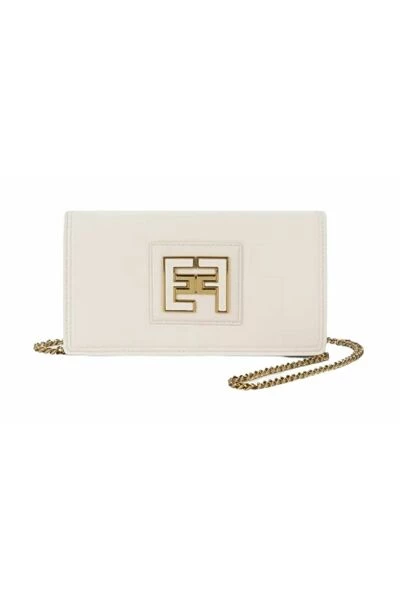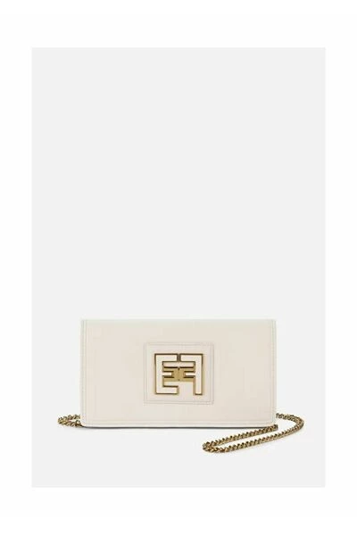 Elisabetta Franchi -portfolio in nep Granato Print Leather met centraal goudlogo. Ketting schouderriem. Externe rits en flap met magneetknop.