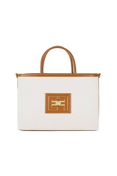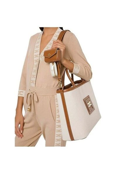 Elisabetta franchi damestas in canvas boterkleur. Ronde handgrepen. EF -logo. Grote schouderriem. Verwijderbare koppelingstassen. Afmetingen: 38 x 30 x 15 cmmodello: BS04A21E2Q99 Commissie: 100%katoen