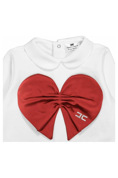 Elisabetta -franchi -jurken trui met ronde kraag, hartapparatuur en geborduurd logo aan de voorkant, lange mouwen, rechte zoom, snap -knoopafsluiting. Broek met elastische tailleband. Samenstelling: 65% katoen, 35% polyester. Behandeling: Hand Wash Max 30 °. Gemaakt in Italië