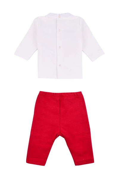Elisabetta -franchi -jurken rood omvat trui en broek trui: Peter Pan kraag lange mouwen achterafsluiting met snap -knoppen voor detailbroek: elastische taille samenstelling: katoen 65%; Polyester 35%