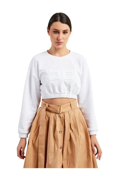 Krullend korte sweatshirt MD01221E2-270 Bone Elisabetta franchi