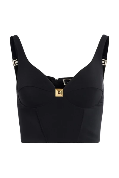 Top Elisabetta -franchi in zwarte viscose -scheuren met Maxi Gold Storm. Verstelbare beugelsamenstelling: 96% viscose, 4% elastaan
