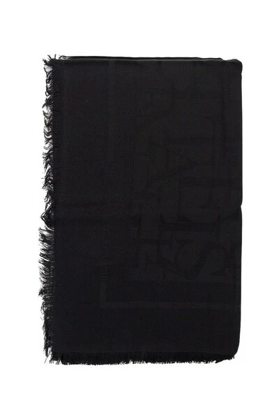 Elisabetta franchi -sjaal in viscose gemengd met Jacquard Let Motif Logo Tone op toon. Geklommen randen. (140x140cm)