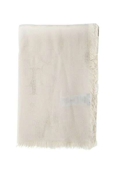 Elisabetta franchi -sjaal in viscose gemengd met Jacquard Let Motif Logo Tone op toon. Geklommen randen. (140x140cm)