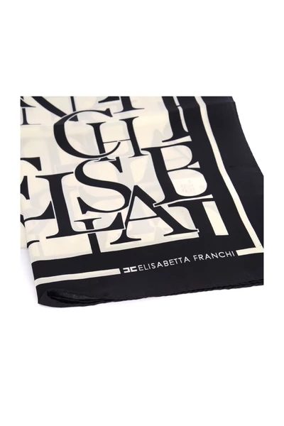 Foulard Elisabetta -franchi in witte en zwarte zijde met logo. Afmetingen: 90 x 90 cm