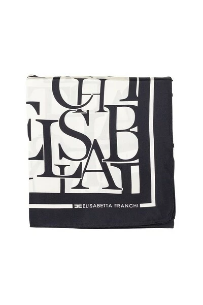 Foulard Elisabetta -franchi in Silk Press Let Logo. Contrastprofiel. (140x140cm)