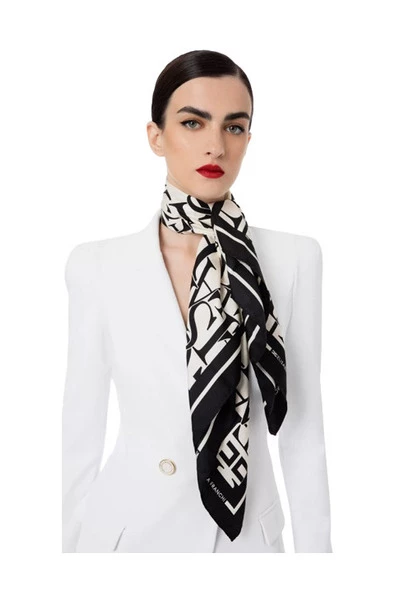 Elisabetta franchi sjaals Model: FO02F26E2.e84 Silk Foulard overal over lettersontwerpafmetingen: 90 cm x 90 cm