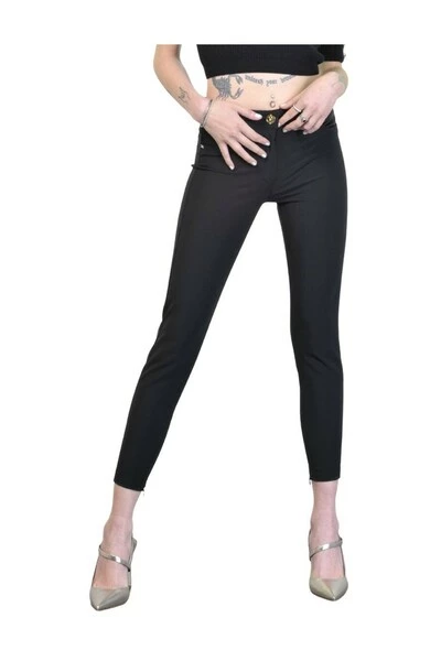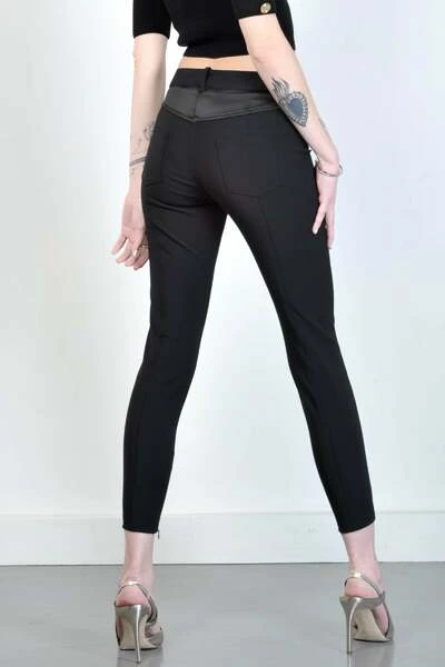 5 stretch pocketbroek met satijnen kleurinzetstukken. Zwarte kleur. hechtende pasvorm. Zip op de enkel. Sluiten met knop en zip. Samenstelling: 84% polyamide 16% elastan gemaakt in Italië