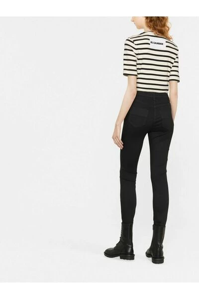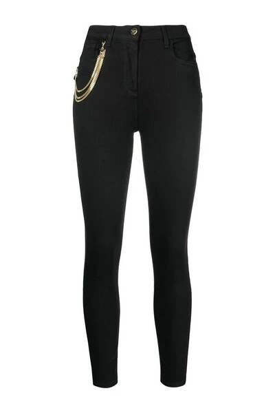 Elisabetta franchi jeans zwarte ketting-detail skinny jeans van Elisabetta-franchi met zwart, stretch-kota, voorste knop en zip-bevestiging, riemlussen, klassieke vijf zakken, magere snit en ketting-link detaillering.