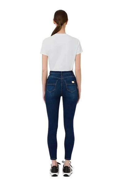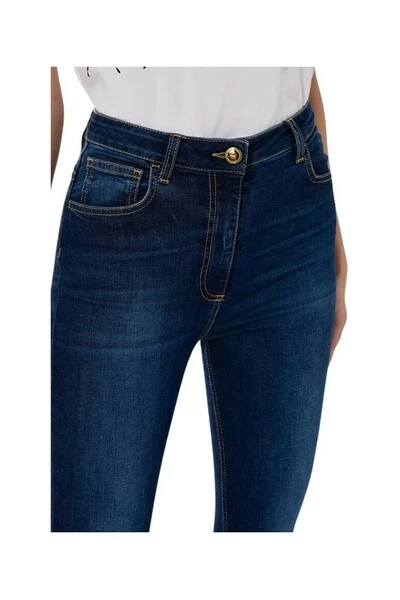 Denim broek van vijf zakken met een hoog schot, pernera pitillo en lang naar de enkel. Gouden metalen plaat genaaid in uw achterzak. PJ45S26E2 Technische beschrijving: denim broek Pitillo vijf zakken lange zakken lange zakken enkelgouden metalen plaat