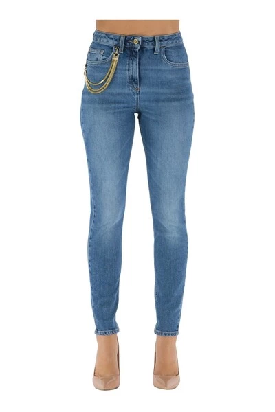 Damesjeans Elisabetta -franchi verfraaid met een gouden charme -keten. Model 5 zakken met fit, super dun. Enkel lengte. Merk: Elisabetta Franchi Artikelcode: PJ65I26E2 Samenstelling: 98% katoen, 2% elastan. Pocket voering: 65% polyester, 35% katoen. Pass: het model is 164 cm hoog en draagt de maat 26.
