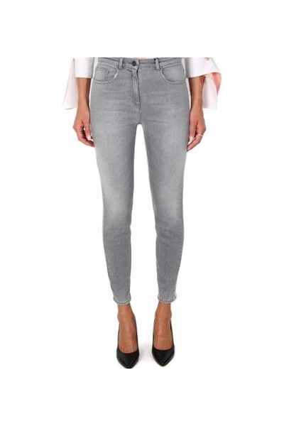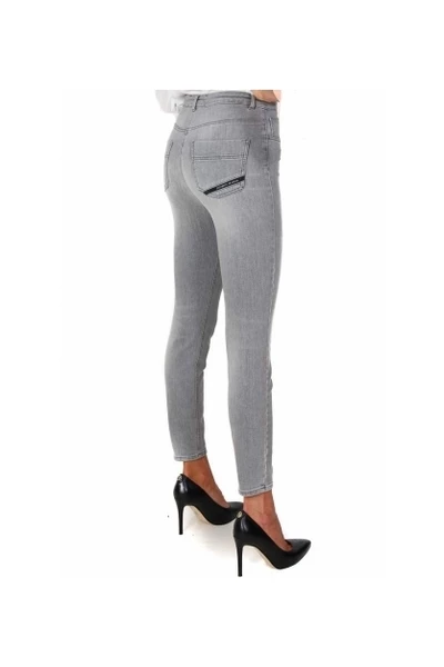 Skinny jeans in denim grijze steen gewassen met logo ingebracht in de achterzakdetail afsluiting met knop en ritskleding magere jurk reguliere leven grijze kleur samenstelling stof 97% katoen 3% elastan kleding gedragen maat 27 modelhoogte 1,80 cm maat 40 40