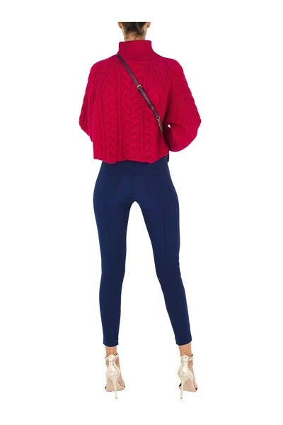 Elisabetta -franchi -broek in stretch gepantserde technische stof. Hoge taille en neppakken. Zakken achtergelaten. Strakke snede en rits aan de onderkant. Verborgen ritssluiting en voorlaagknop. Het model draagt maat 38.
