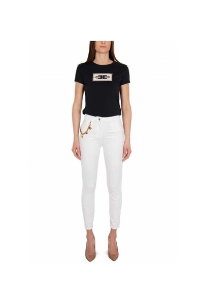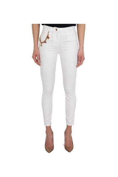 Hoog -geschreven skinny jeans in stier denim canvas met ketting en hangers details sluiten met zip- en knoopkleding