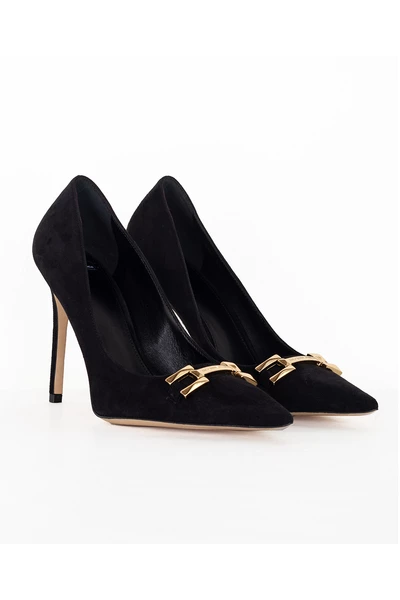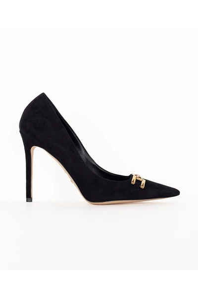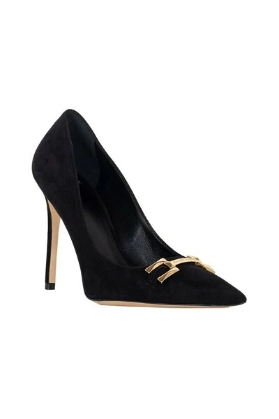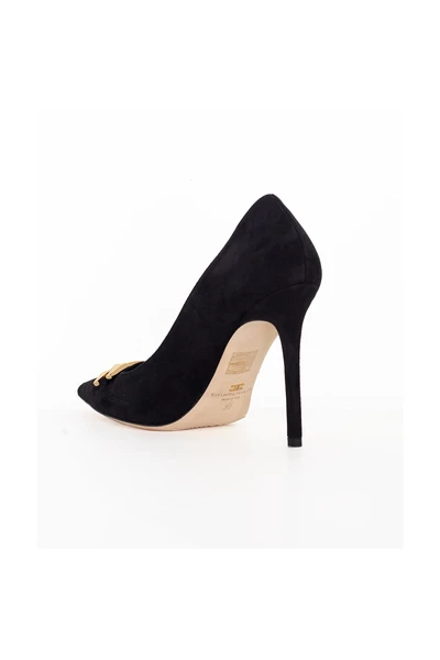 Pumps van suèdeleer versierd met goudkleurig metalen logodetail.