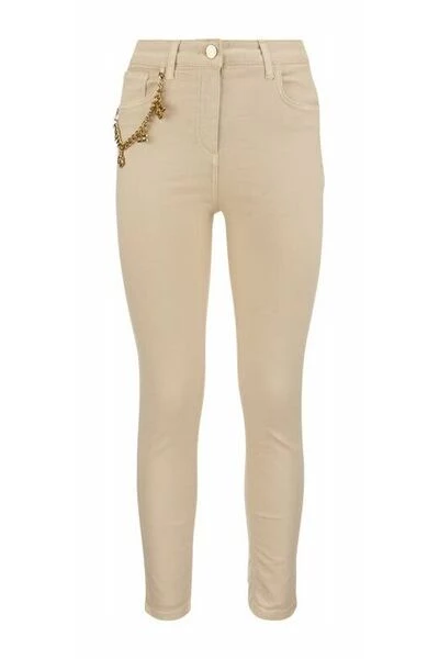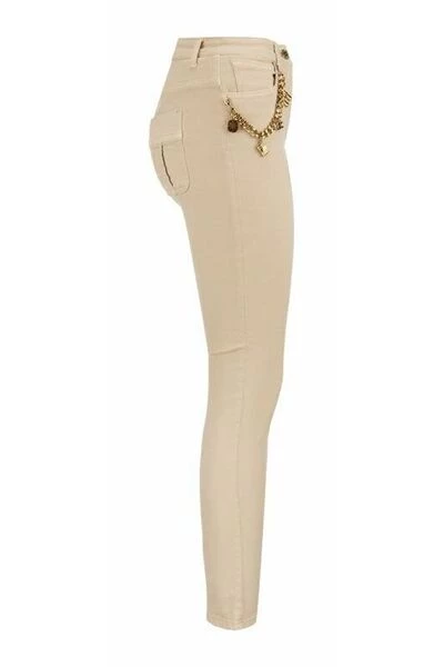 Five-Pocket Jeans in kledingstuk Geverfd katoen, tailleband, super skinny been, enkellengte. Het kledingstuk is verrijkt door een hanger accessoire met safari charmes.- vijf-pocket jeans