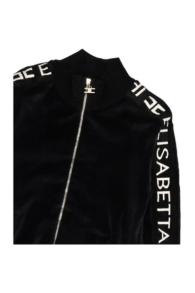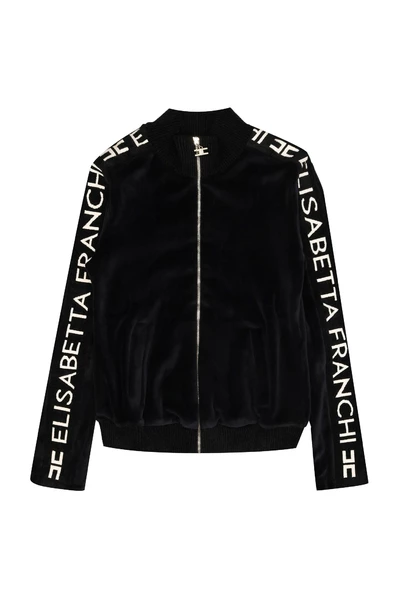 Elisabetta Franchi Sweaters Black – Velvet – Lange mouwen – Logo -band op de armen – Sluiting voor de voorste ritssluiting