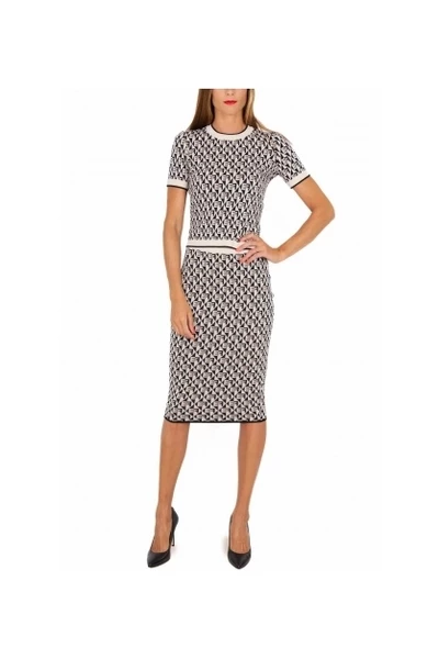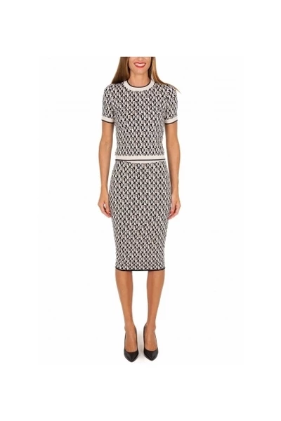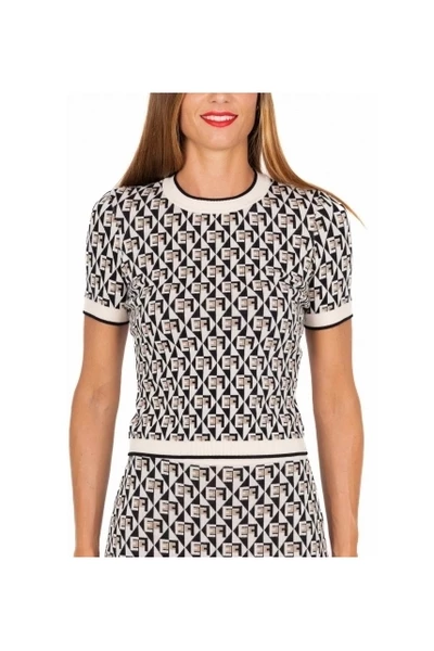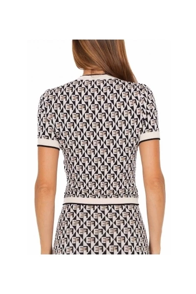 Corte -Sleeved Top van de breimploeg met jacquard ontwerp van het logo -detail giro nek collapse zwarte kleur zwart/boteramenstelling 94% viscose 3% elastan 3% polyamidekleding gedragen maat 40 modelhoogte 1,80 cm maat 40