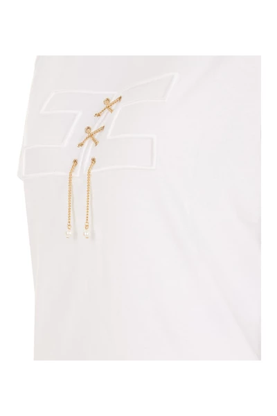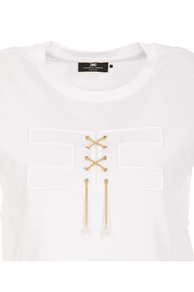 Elisabetta franchi wit T-shirt, Crewneck, frontaal logo