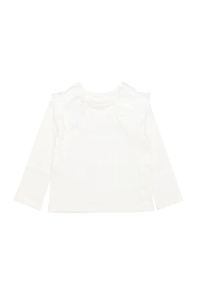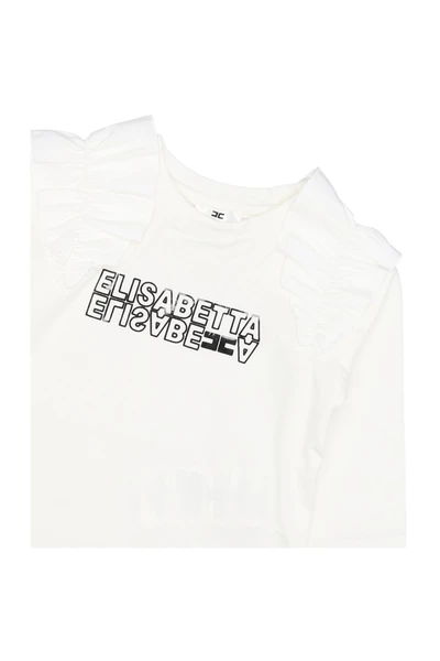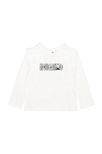 Elisabetta Franchi T -shirts en polo`s – Lange mouwen – Crew Neck – katoen – Logo -print vooraan – Ruches op de kraag