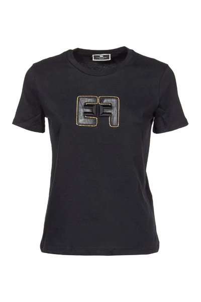 Elisabetta franchi T-shirts en polos zwart katoen t-shirt recht fit centrale elisabetta franchi logo borduurwerk korte mouw