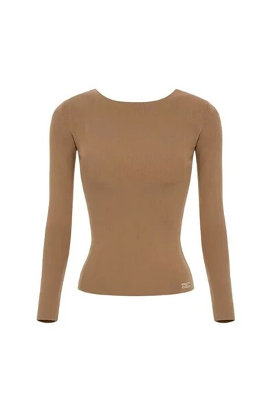 Jersey met een boot, lange mouw en uitgesproken halslijn van achteren om een met elkaar verweven reden. MK56S26E2 Technische beschrijving: Sweater met lange mouwen Kruisdetail aan de achterkant