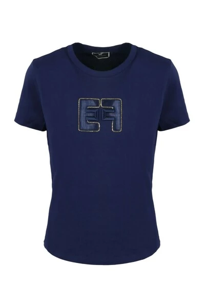Elisabetta Franchi Cotton Jersey T-shirt, met organza-inleg van EF dubbele C-logo afgewerkt met gouden ketting. – FW22 – Slim Fit – Crewneck – Korte mouw – Logo Central Borduurwerk – Made in Italië – 100%katoen