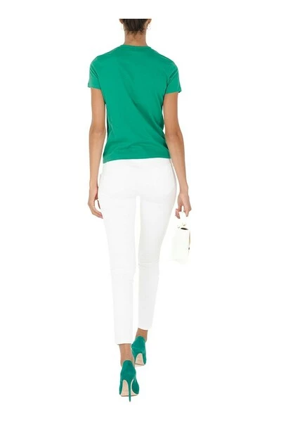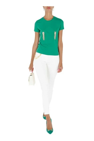 Elisabetta Franchi Cotton T-shirt. Ronde halslijn en korte mouw. Diamond logo detail met hangende ketens. Het model draagt maat 38.