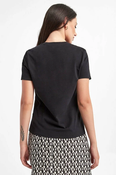Elisabetta Franchi T-shirts en PolOS-model: MA01726E2.G80 T-shirt rechte hem Crewneck-logo Detail met mesh-effectsamenstelling: katoen
