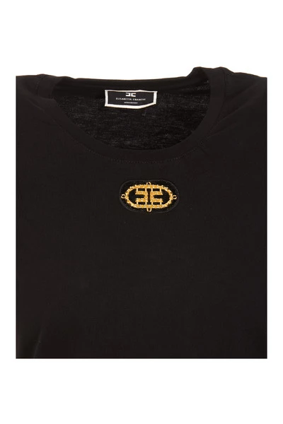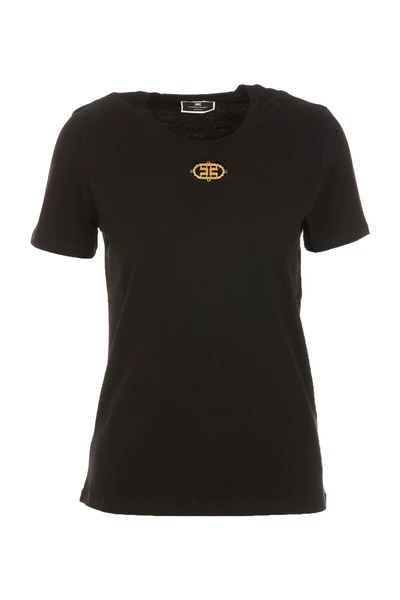 Elisabetta franchi truien zwart T-shirt met frontaal plaque-logo, crewneck