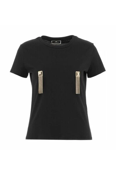 Korte mouwenmade in Italystrass Application Stud DetailsModelHeight: 176 cm; Grootte: 42
