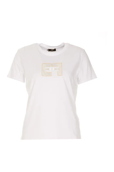 Elisabetta franchi truien blanke vrouw t-shirt met frontaal logo, crewneck