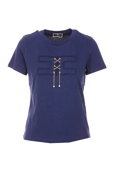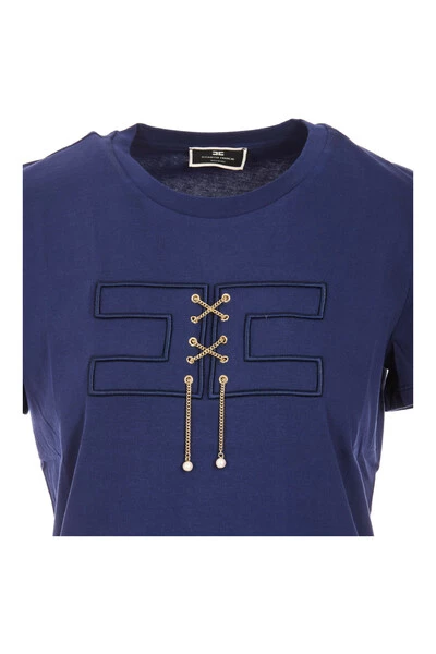 Elisabetta Franchi Blue T-shirt, Crewneck, Frontal Logo