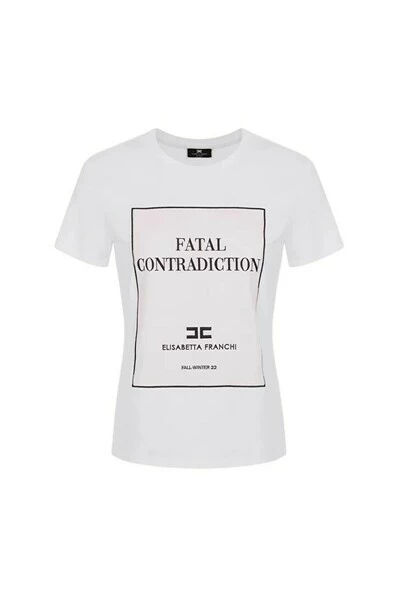 T -SHIRT OP EEN COTTON PUINT BASE MET RECHTE EN HALF -SLEEVE GESLAATS. Het front draagt ​​een contrast -borduurwerk, een organdà -paneel met de registratie ;fatale tegenstrijdigheid; en het EF -logo. MA00926E2 Technische beschrijving: katoen T -shirt rechte snede geborduurde geborduurde contradictie Korte manga Compositie: