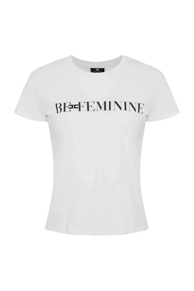 Elisabetta-franchi T-shirts en gipspaalcoaching T-shirt in katoentrui met korte mouwen met een strakke pasvorm, gekenmerkt door een bedrukt logo, centraal geplaatst.