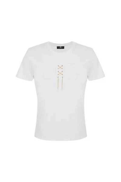 T -SHIRT op een rechte katoenen punt. Het presenteert een dubbele C -reliëf aan de voorkant dankzij een borduurwerk van dezelfde kleur en een metalen kettingovergang die eindigt met twee parelhangers. MA00726E2 Technische beschrijving: Katoen T -THIRT recht gesneden Dubbel Logo C Metal Chain Crucantes of Pearl Samenstelling: