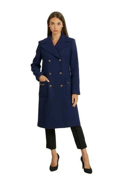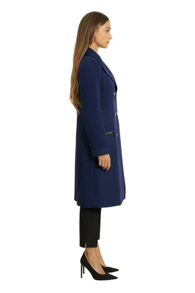 De stoffenjas van Elisabetta Franchi, Trapezio -lijn, dubbele schorte knoopers met detail van licht goudklogde knoppen, zakken met details van logo -terminals. Slimlungazza Fit: Long Model is LTA 1,69 cm, draagt maat 40 in de zwarte variant en maat 42 in de blauwe variant 75% wol 25% polyes bij 22