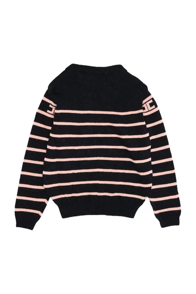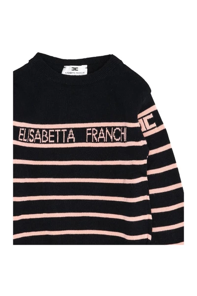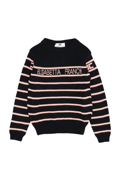 Elisabetta Franchi Truien – Viscose – Ronde hals – Lange mouwen – Logo op de voorkant – Geribde zoom en manchetten