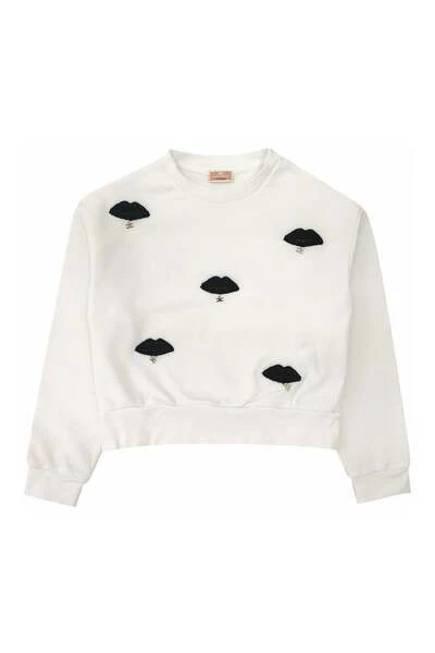 Bevat: Elisabetta franchi Mijn babymeisje Ivoor sweatshirt met borduurmondjes en dubbele cadeptische charme: elisabetta franchi mijn baby ivoor ivoor Katoen katoen katoen katoen katoen katoen katpper katoen katoen dual cManiculcol dubbele cmaniccm, cuffs en bodem van ribbonmodel geknipt: 65% katoen 35% polyeven ITalyVestability: Size Age