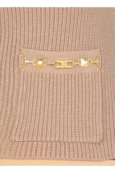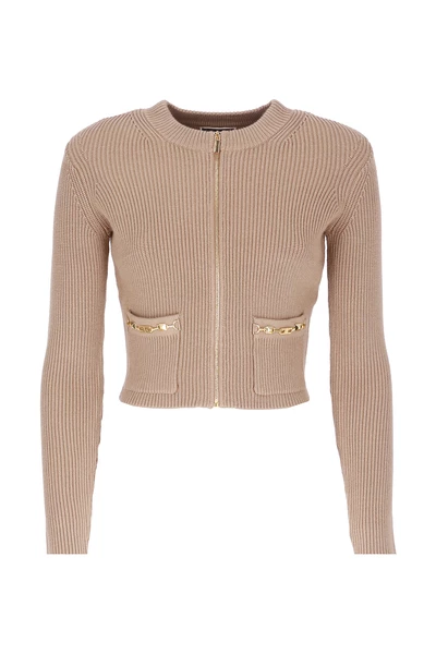 Elisabetta Franchi Sweaters Dove Gray – Black Elisabetta Franchi bijgesneden trui voor vrouw – gebreide halslijn – Lange mouwen – Rits voor de voorkant – Twee voorste spleetzakken – Gouden kettingdetails op zakken