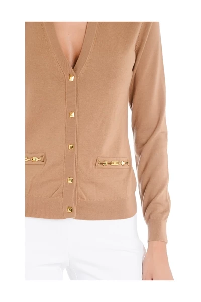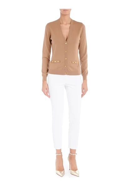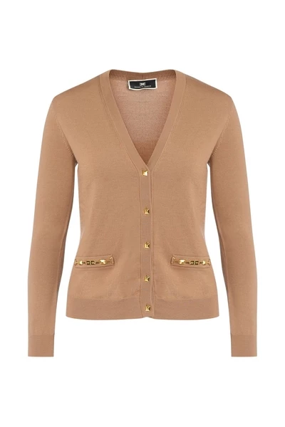 Cardigan Elisabetta -franchi met goud -gekleurde goud -gekleurde terminals. V -folding VCCHE Pack Puls Samenstelling: 100% wol