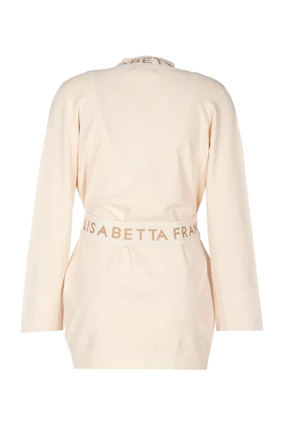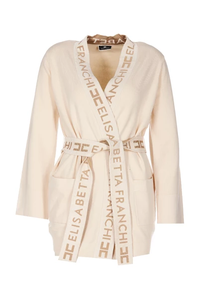 Elisabetta franchi truien wit vest met riemafsluiting, logo, zakken, verwijderbare riem