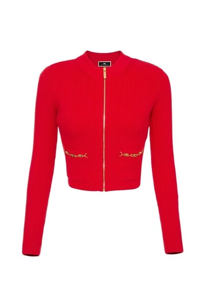 Micro vest met goudkleurige metalen rits, lange mouwen en twee opgestikte zakken met nieuwe drukknoopsluiting bovenop de boorden.