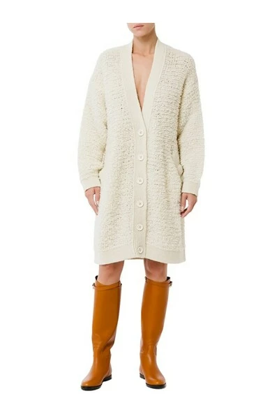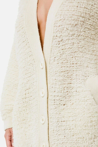 Oversized gebreide vacht met bontsteek met enkele borsten met knooppunten en geribbelde zomen.