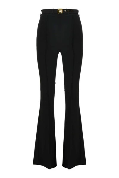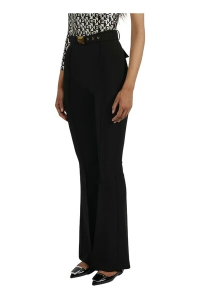 Stretch broek van crêpe met afneembare riem met goudkleurige gesp. Verborgen ritssluiting aan de zijkant. Achterflappen met studs. Gemaakt in Italië.