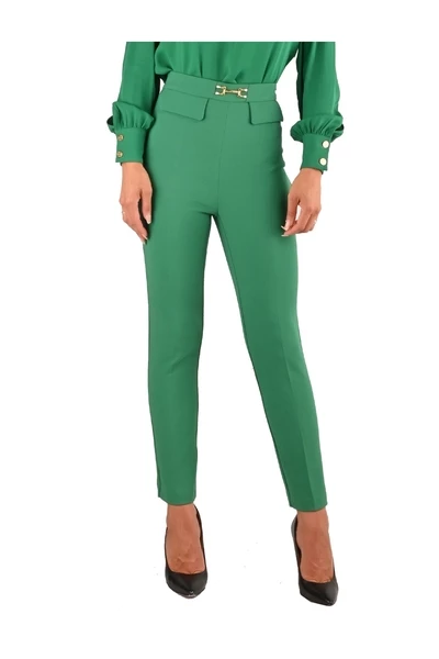 Pantallone Capri Elisabetta -franchi in scheuren met logo -merk in goud in het leven en nepzakken in skate. Een elegante en verfijnde broek om te dragen voor elegante en casual uiterlijk.