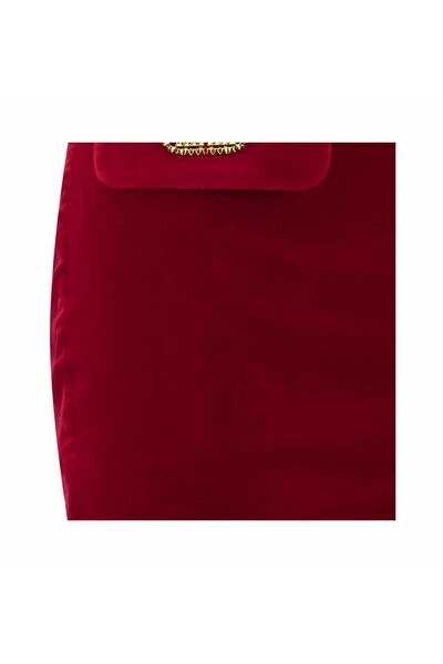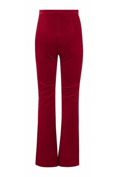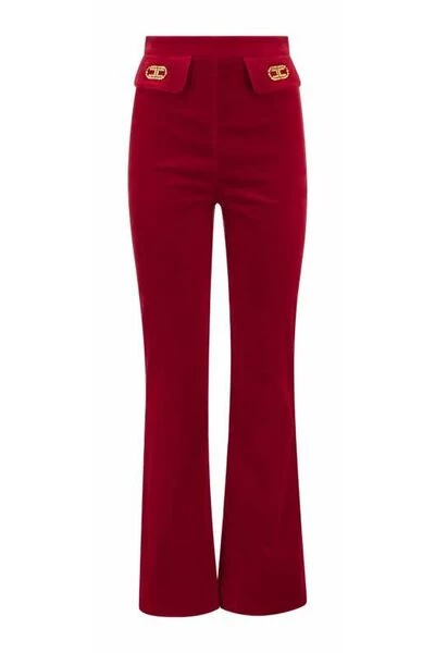 Velvet broek met een dicht passend silhouet enigszins uiteenlopen aan de onderkant, gekenmerkt door twee fluwelen flappen lateraal onder de tailleband, verfraaid door de toepassing van goudmetaalaccessoires in de vorm van een ingebed logo.