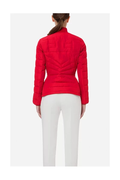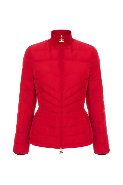 Elisabetta franchi giacconi kus piumino 100 g, kort, uitgeput met viscose jersey nek en metalen ritssluiting. Een spelletje snijwonden en stiksels creëren een Cup -effect op de voorkant en het dubbele logo C op de schouders.